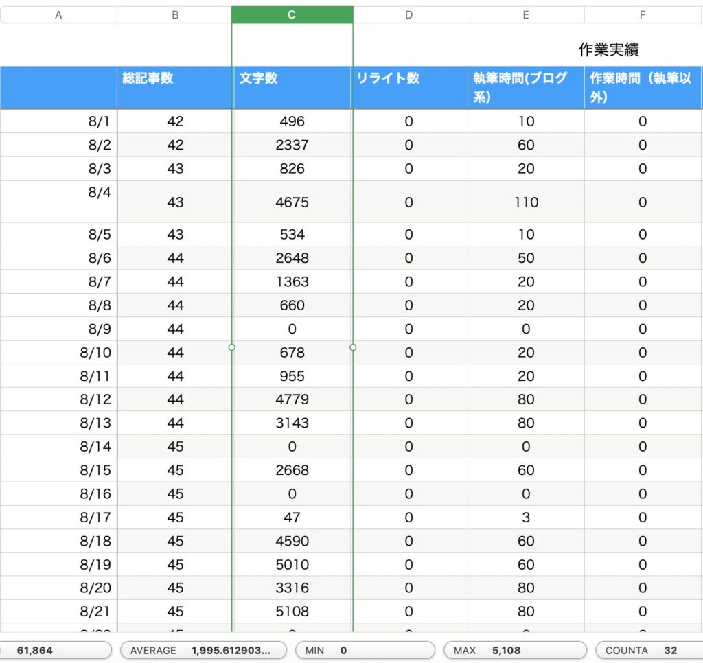 8月に書いた記事数は7記事で文字数は61,864文字でした!過去最高文字数です!