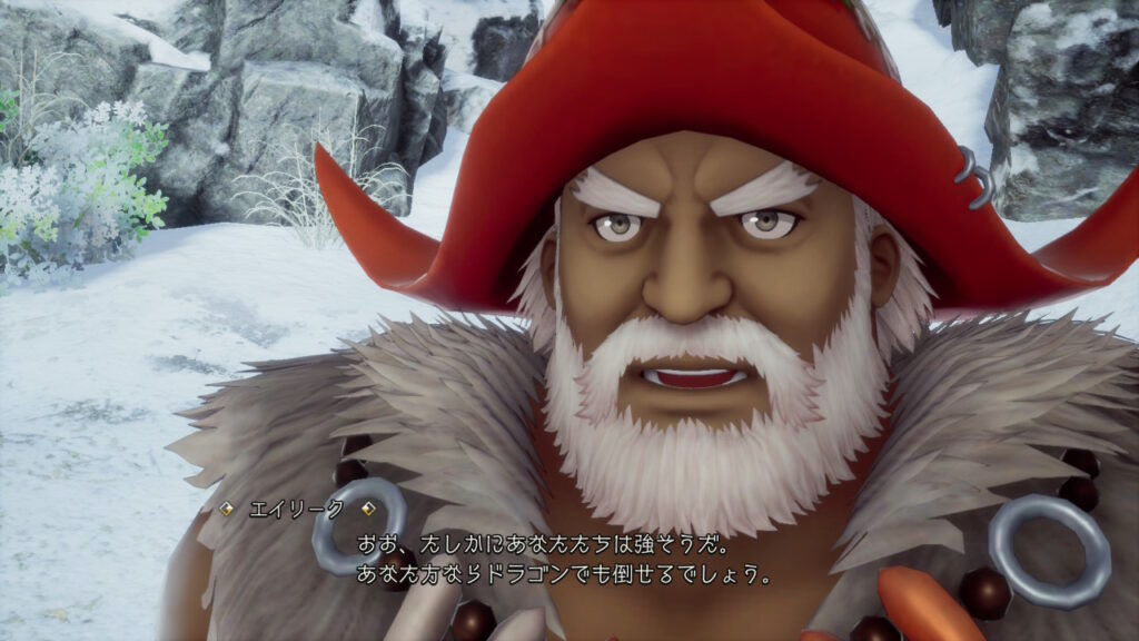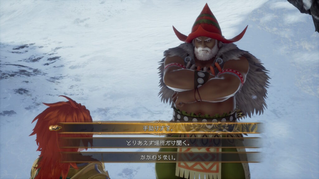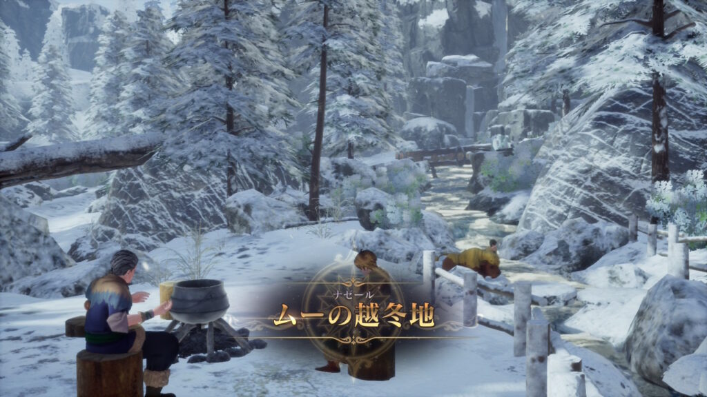 越冬地には集落の親方みたいな人がいたので話すと、どうやら南下したいけど間に強そうなモンスターがいて、移動できないみたいです。