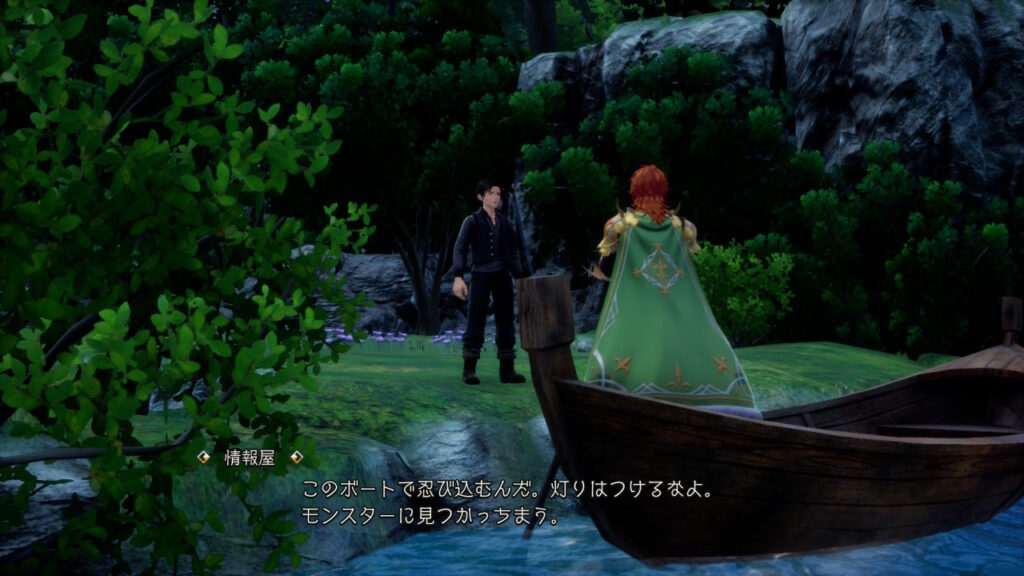 船に乗って要塞の裏口から侵入します。