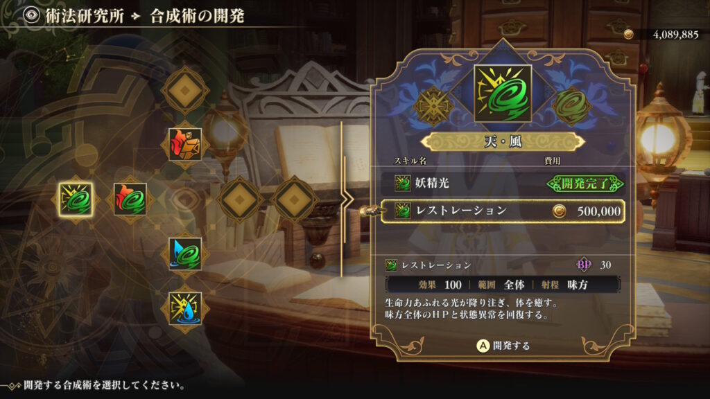ただBP30と結構消費が激しいのと、覚えさせるのに風と光のレベルが20以上ないといけないので、この時点で覚えられるキャラはいなかったです…