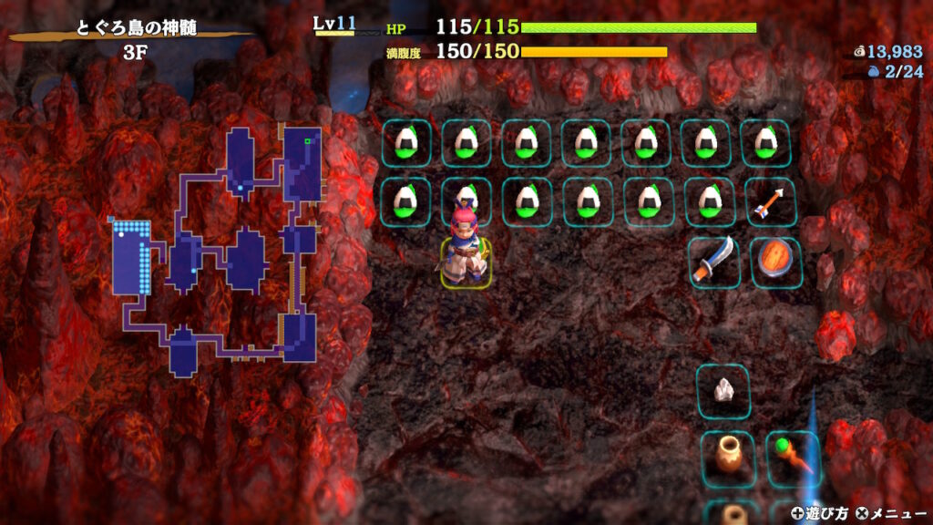 1Fで潤沢にアイテムを稼いだ人も、矢も石もいらない杖も出なかった人も、少しずつでもいいのでおにぎり稼ぎをしておくと後々楽になります。